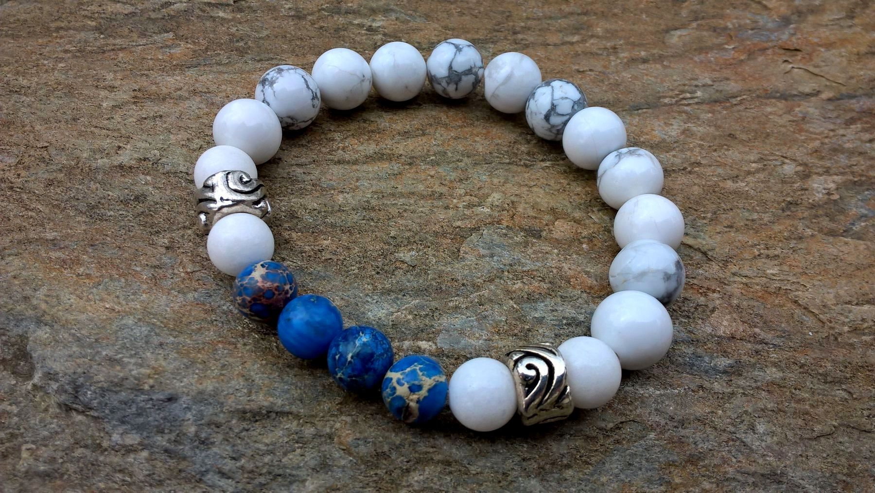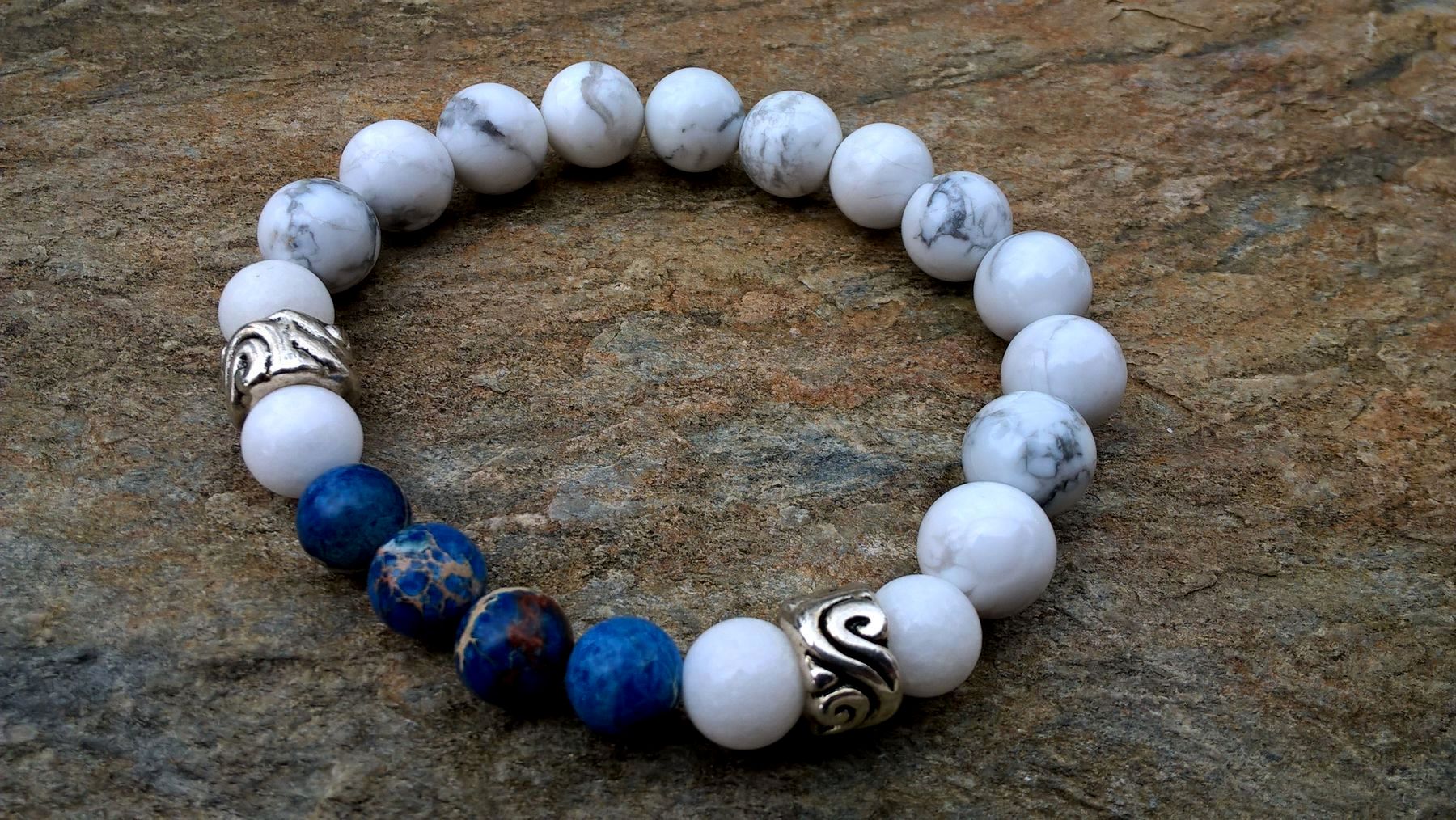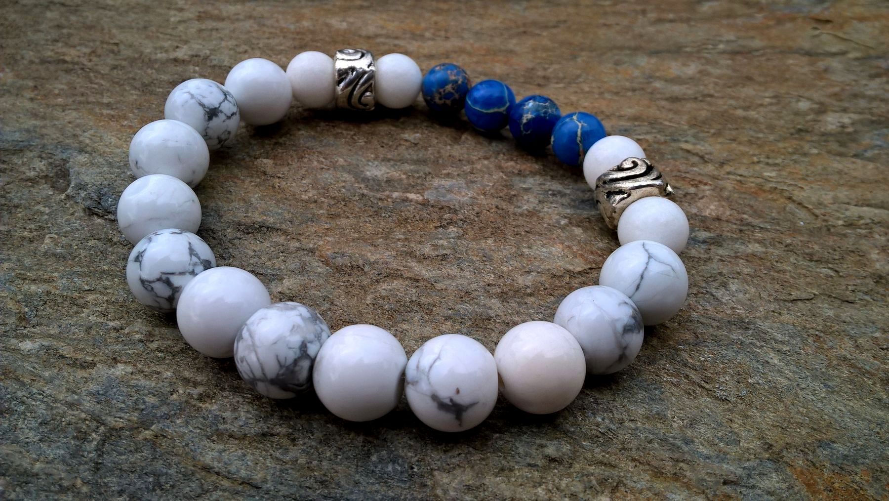 Szlachetny jaspis cesarski w pięknym połączeniu z lux howlitem.